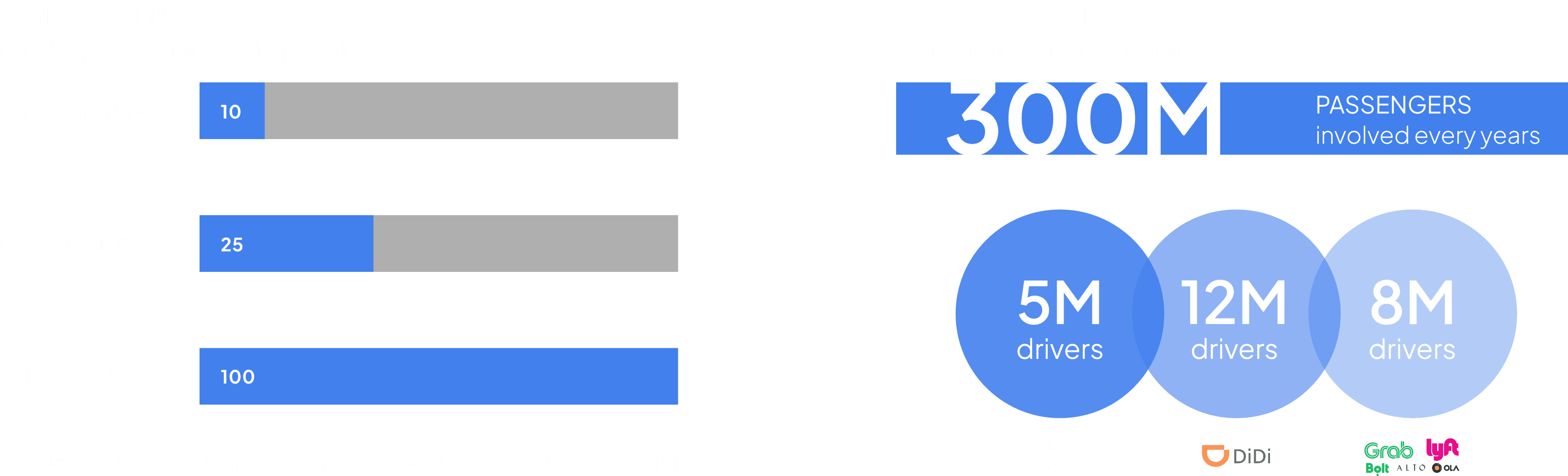 The air quality study highlights a significant pollution problem associated with car traffic. Data shows that car traffic causes the highest pollution. Additionally, shared mobility services involve 300 million passengers annually, with 25 million drivers from platforms like Uber, DiDi, and others. This suggests a critical need to address the pollution problem caused by cars and the risk and fear of passengers and drivers contracting bacteria and viruses from one another (e.g., COVID-19).