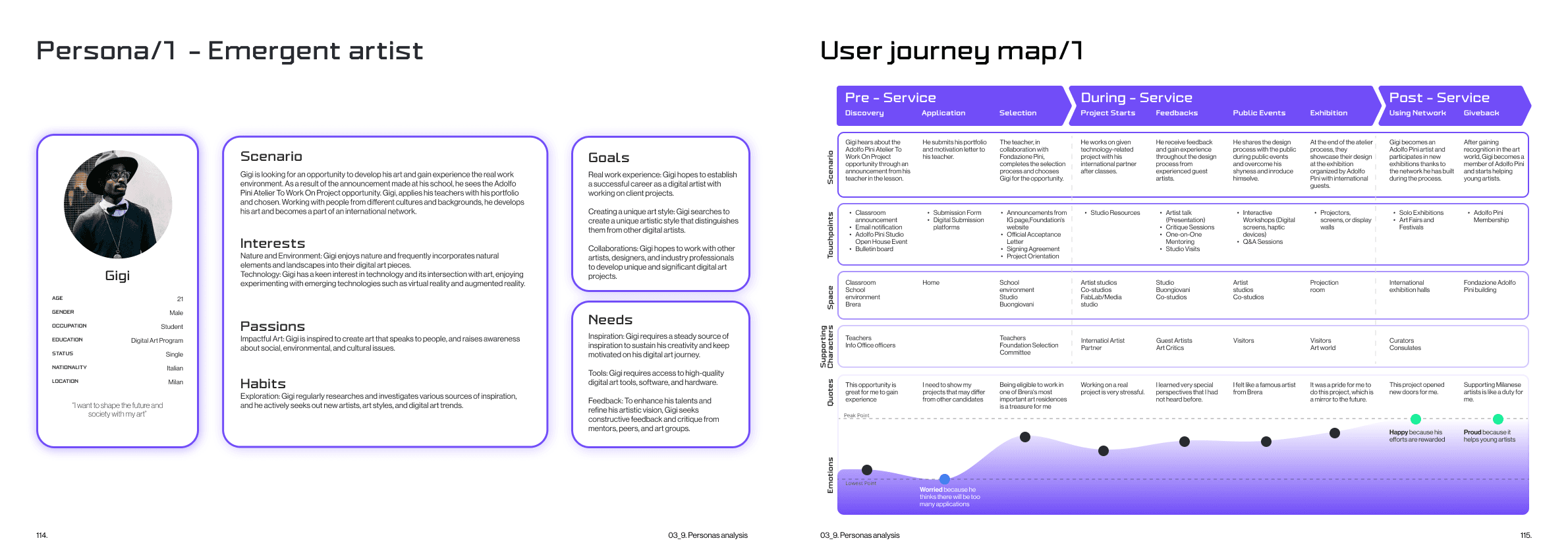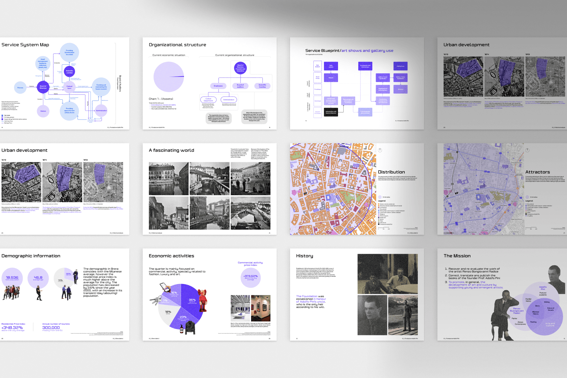 A service design project for the then-upcoming relaunch of the Fondazione Adolfo Pini, envisioning future scenarios.