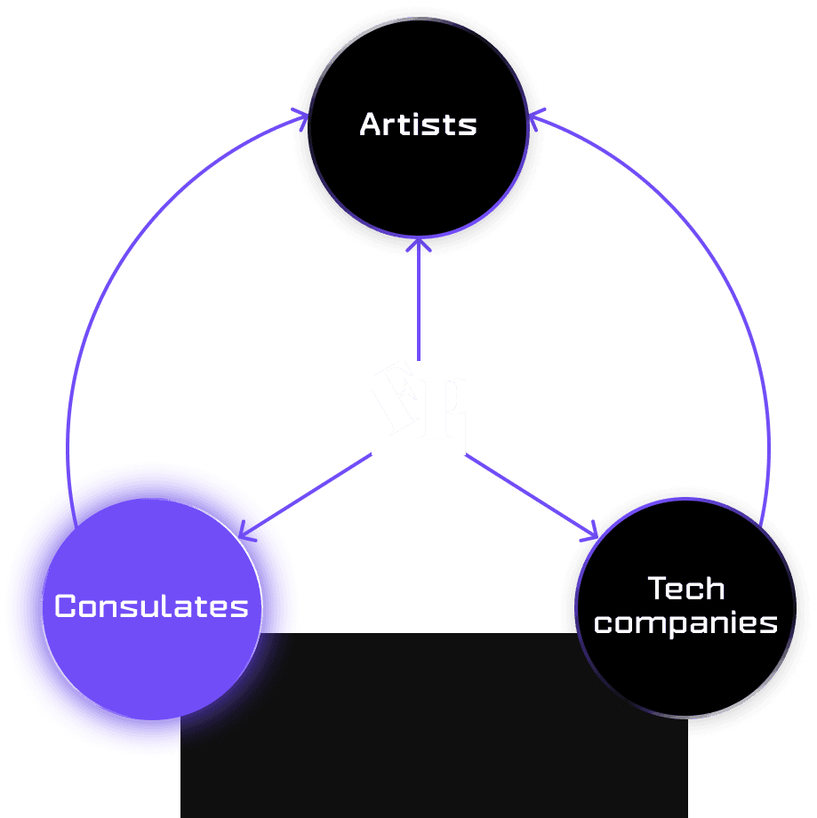 Consulates are identified as invaluable sources for Fondazione Pini: they can help spreading the call for applications and provide financial support for international artists' accommodation in Milan.